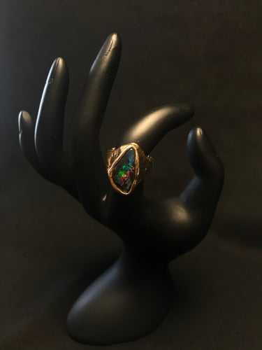 14k yellow gold nugget ring with multi color stone inlay (boulder opal) Size 5.25