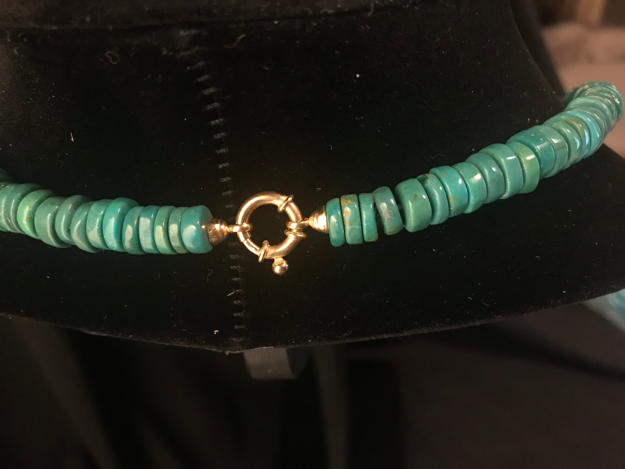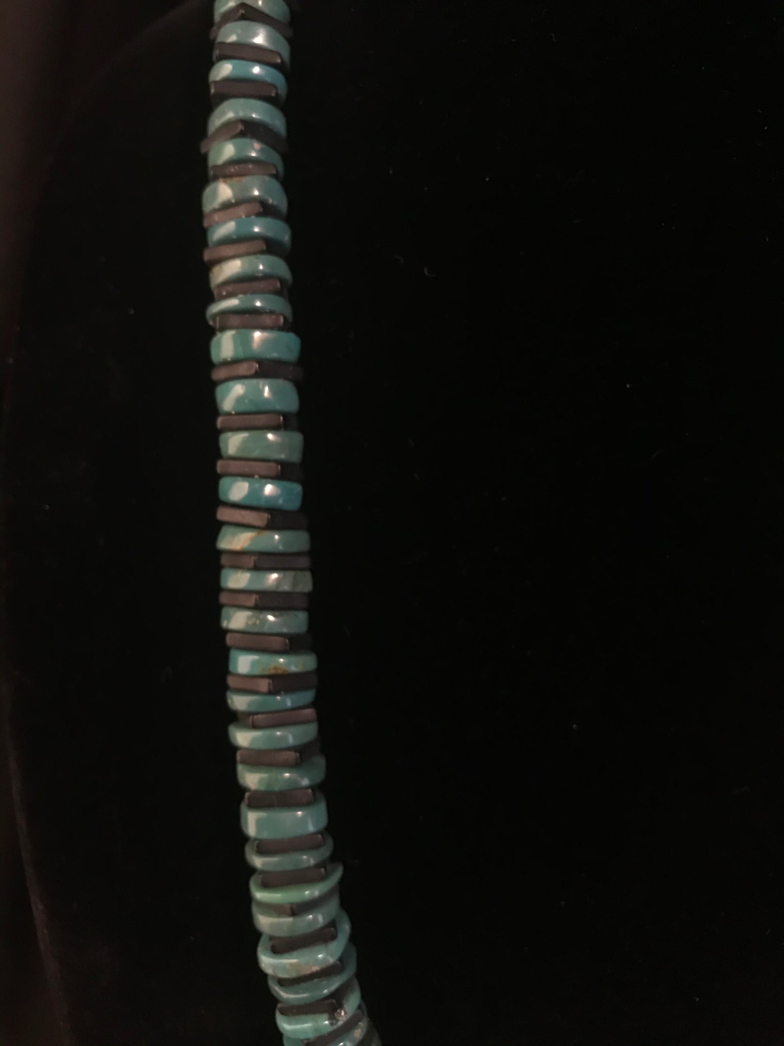 (turquoise color - perhaps treated turquoise) interspersed with black square beads