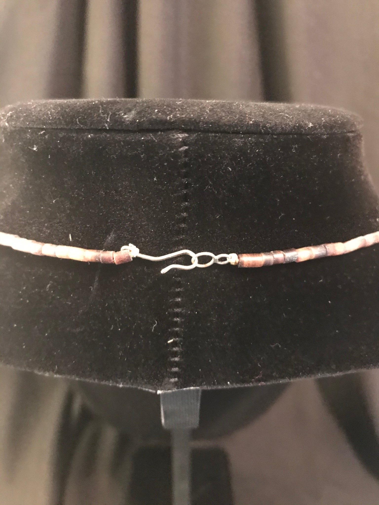 Necklace is made with pin shell rolled beads (brown) and treated turquoise nuggets. 1965-1970
