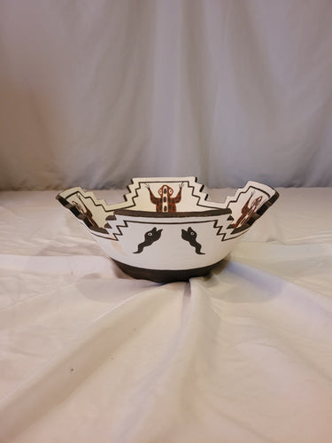 Zuni brown frogs and black tadpoles on white terrace bowl by Quanita Kalestewa b. 1932