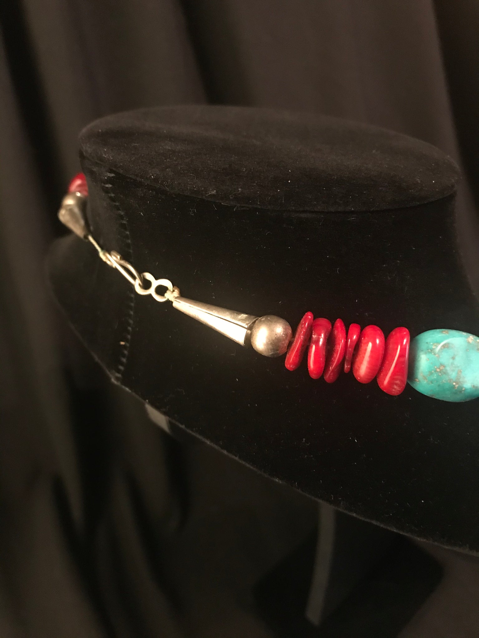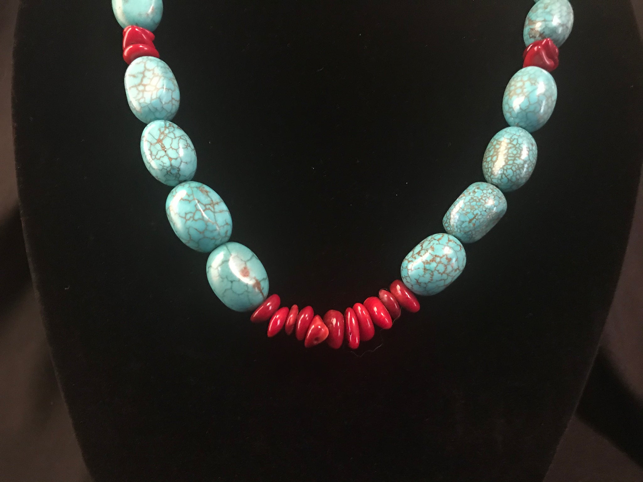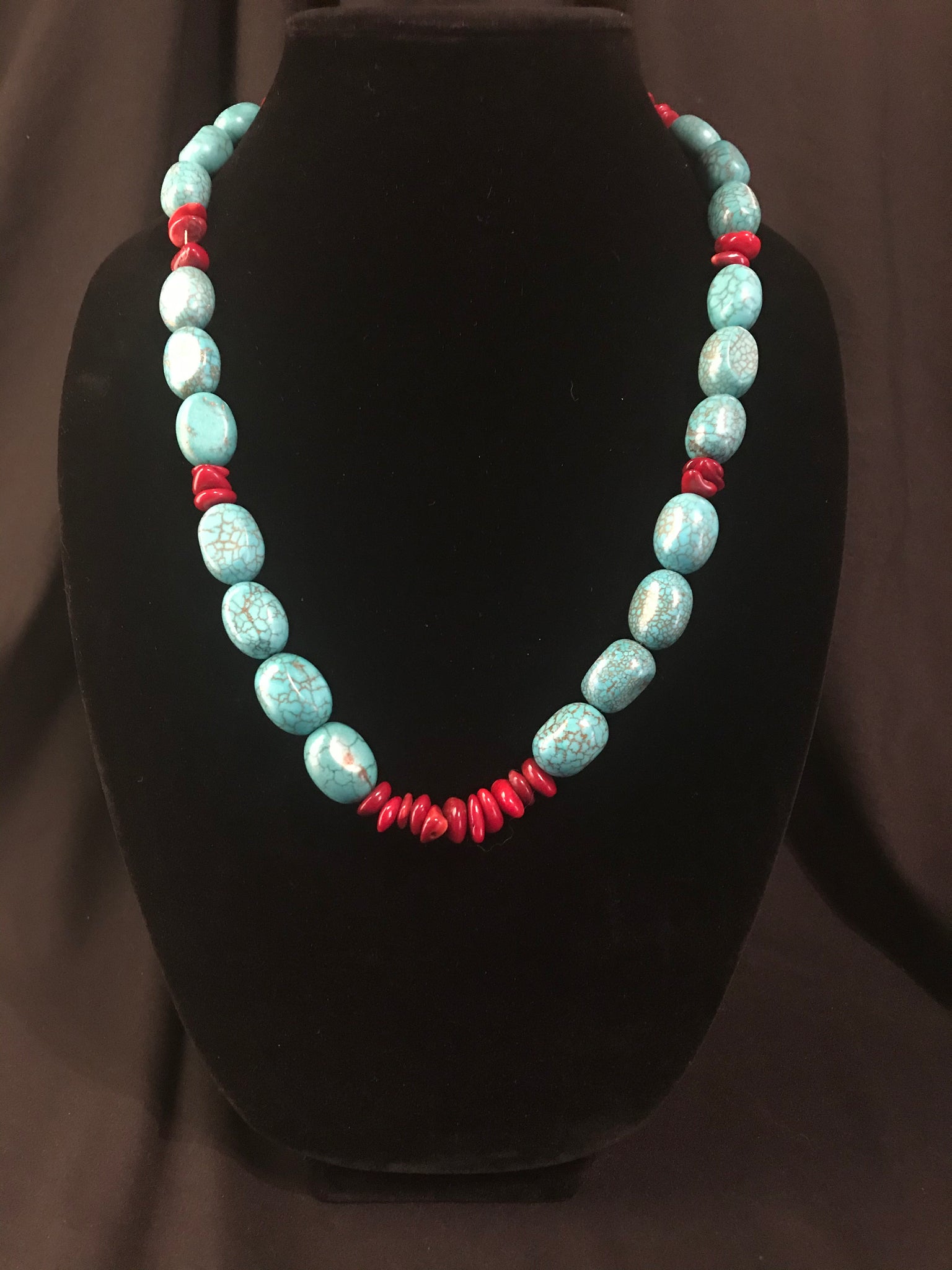 coral beads interspersed; possibly dyed Asian bamboo coral.