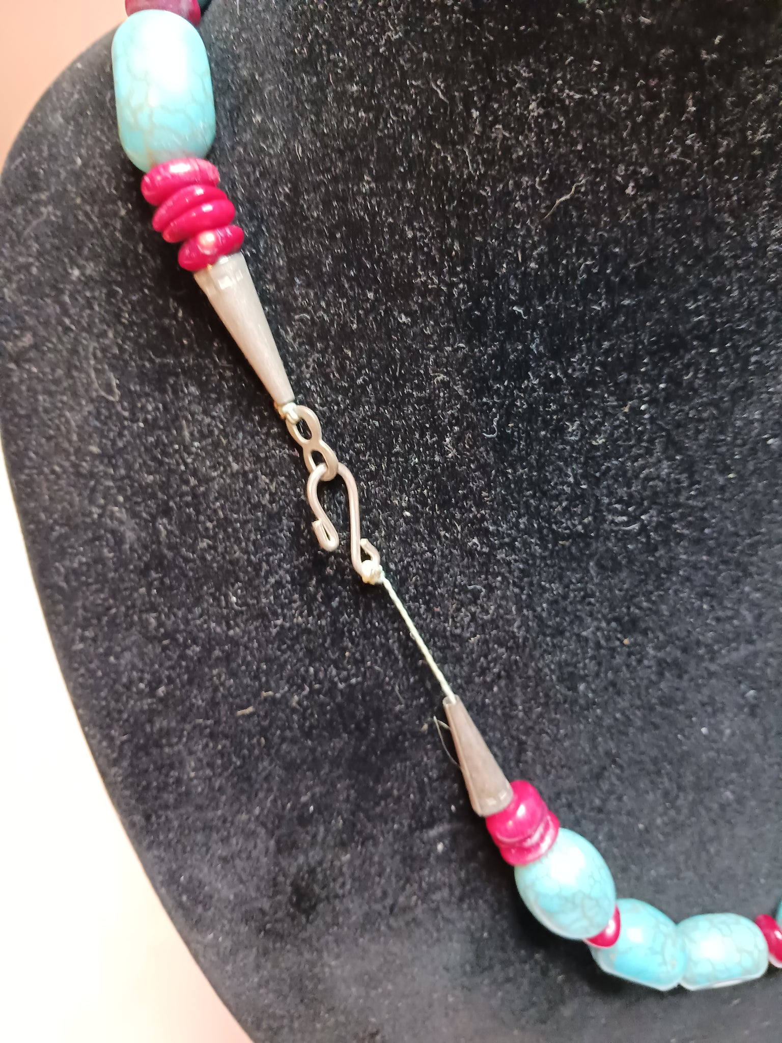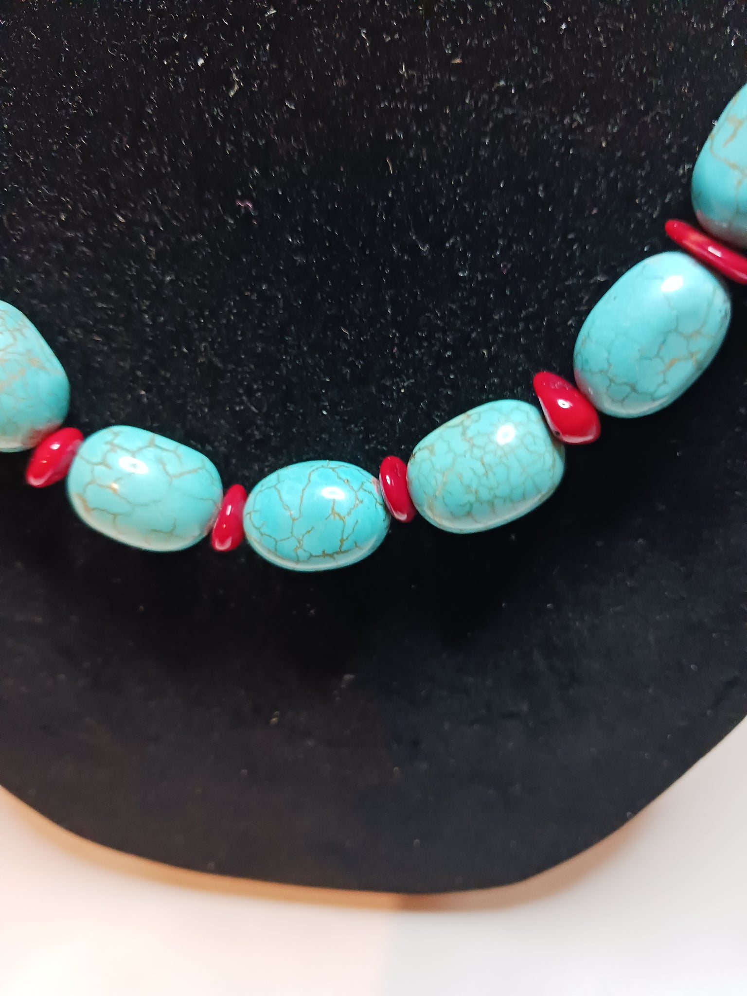 Turquoise block beads interspersed with coral dyed beads